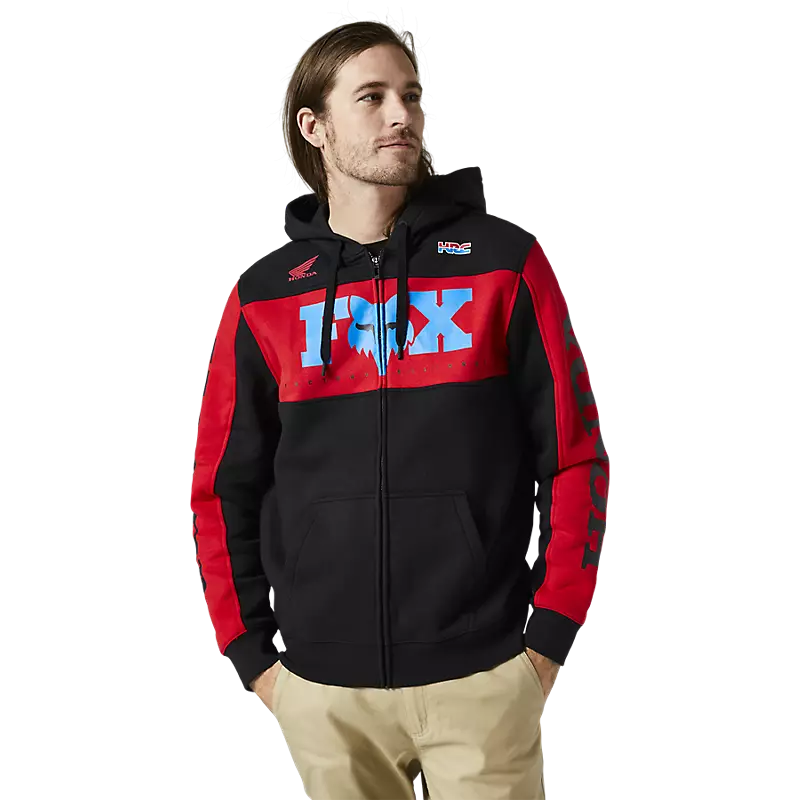 The Honda Zip Hoodie blends the best of both worlds—a zip-up jacket with a hoodie—then throws in some Honda love for fans of one of the most iconic brands in motocross. Made from heavyweight fleece, the feel is soft and cozy, while the temperature control is effortless, thanks to the zipper. Wear it to the track, wear it to a BBQ, wear it anywhere—it’s that versatile. A definite must-have for fans who love it when Fox and Honda get together.