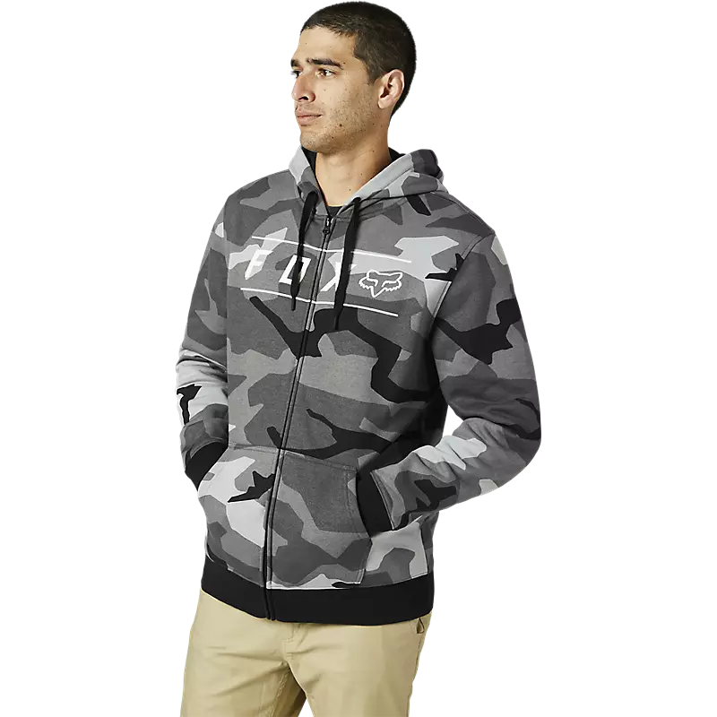 The Pinnacle Camo Zip Hoodie blends the best of both worlds—a zip-up jacket for easy on/off, and a convenient hoodie for instant warmth. Made from heavyweight fleece, the feel is soft and cozy, while the temperature control is effortless making it a great transitional hoodie. With its iconic Fox graphics on classic, all-over camo—sure to be a fan favorite—this functional zip hoodie can come off in a split second should the conditions get heated. Wear it to the track, wear it to a BBQ, wear it anywhere—this hoodie is all about versatility.